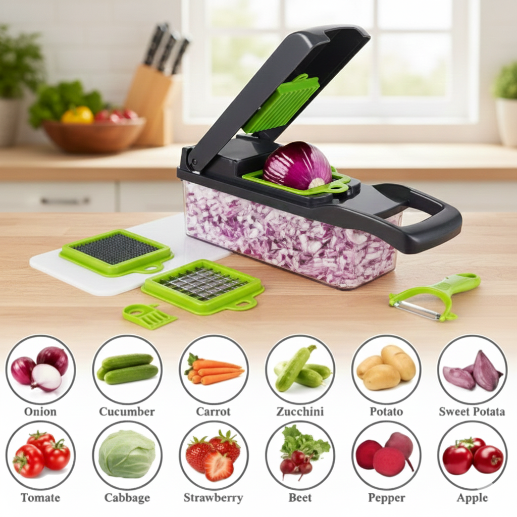 From onions and potatoes to fruit, cheese, cucumbers, herbs, and more — the cutter handles both soft and firm ingredients with ease.